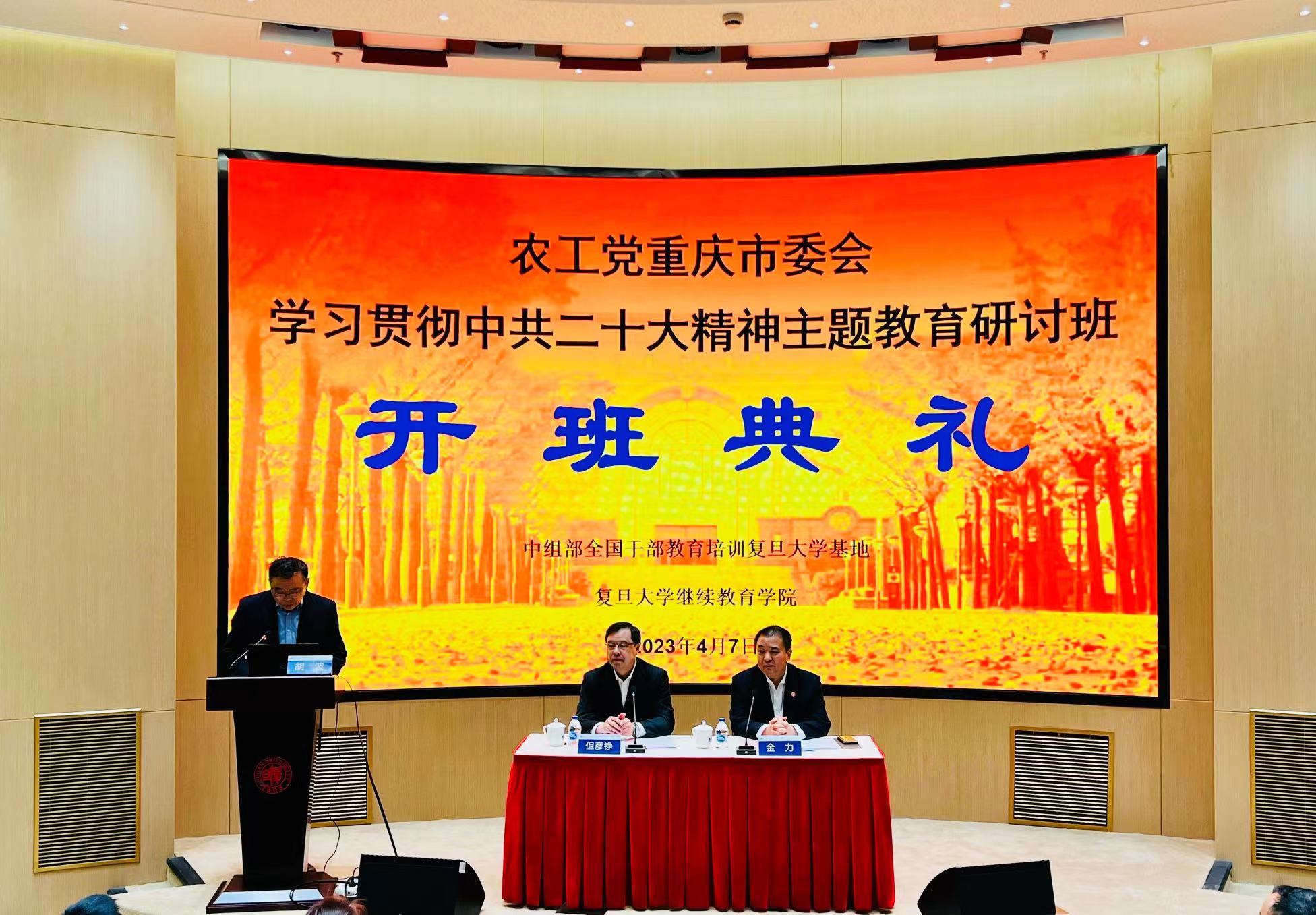 近期,农工党重庆市委会学习贯彻中共二十大精神主题教育研讨班在我校举办。农工党中央副主席、重庆市委会主委,重庆市人民政府副市长但彦铮,复旦大学校长金力出席开班仪式。开班仪式由复旦大学继续教育学院院长胡波主持。