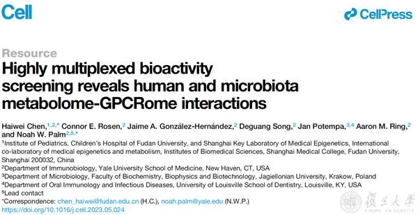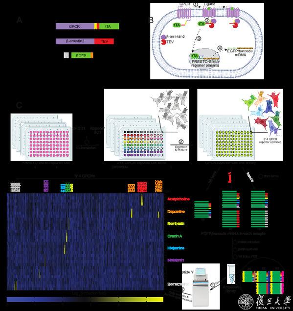 6月14日,复旦大学生物医学研究院和复旦大学附属儿科医院双聘PI陈海威博士在《细胞》(Cell)发表了题为“Highly multiplexed bioactivity screening reveals human and microbiota metabolome-GPCRome interactions”的论文(陈海威博士为第一作者兼共同通讯作者,耶鲁大学医学院Noah Palm为通讯作者),该研究结合条形码技术和下一代基因测序技术,将PRESTO-Tango技术升级为PRESTO-Salsa筛选平台(Parallel Receptor-ome Expression and Screening via Transcriptional Output-Salsa),在(96孔板)单孔中集成314个GPCR报告细胞系,用于“一对多”功能筛选。