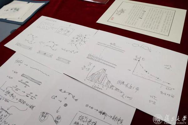 杨玉良给开化纸非遗传人黄宏健讲解手工造纸中的科学问题,图为讲解手稿