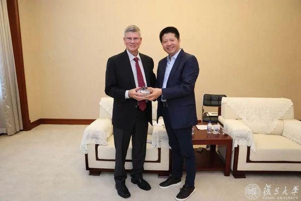 裘新对柯伟林的到来表示欢迎。复旦与哈佛作为综合型大学,多年来开展领域广泛、内容丰富的合作,希望未来两校交流与合作在保持广度的同时,进一步拓展深度。当务之急是尽快恢复校际合作与师生交流项目,推进两校科研合作,鼓励师生开展长、短期交流互访。他向柯伟林简要介绍了近期上线的复旦智算平台CFFF,探讨AI for Science(科学智能)所引领的科研范式变革,希望柯伟林先生能在推进两校科研合作、人文交流方面,继续发挥关键作用,为深化人才培养、推动科学思想与科学范式的变革做出更大贡献。