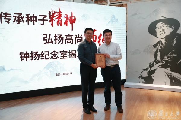 三年前,由张晓艳教授发起成立了复旦大学钟扬教授基金,得到了社会各界的支持。三年来,复旦大学出版社持续将《钟扬文集》《钟扬纪念文集》《钟扬小传》三本书的销售利润捐赠给钟扬教授基金,希望支持更多热爱科研事业、热爱公益事业、热爱教育事业并具有奉献精神的师生将钟扬同志的种子精神发扬光大。揭幕仪式上,复旦大学出版社再次向钟扬教授基金捐赠了2019-2020年《钟扬文集》《钟扬纪念文集》《钟扬小传》销售利润11万元。