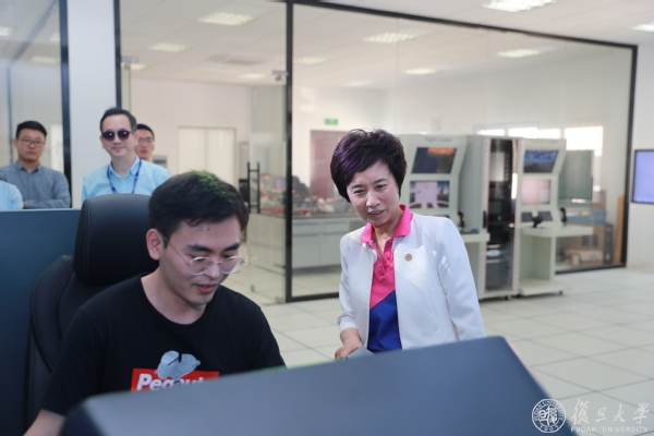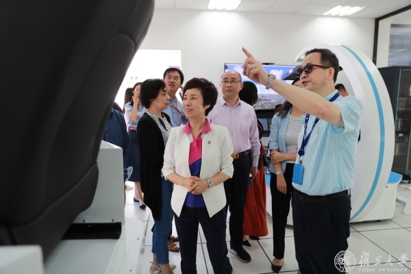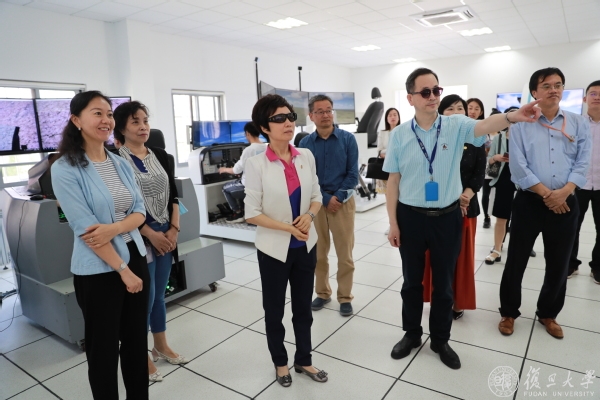 在航空航天系飞行控制与仿真实验室,焦扬一行慰问了在实验室做科研的留校学生,认真询问了大家的科研进展,并戴3D眼镜,体验了空天一体模拟器。航空航天系艾剑良老师就实验室的情况进行了详细介绍。