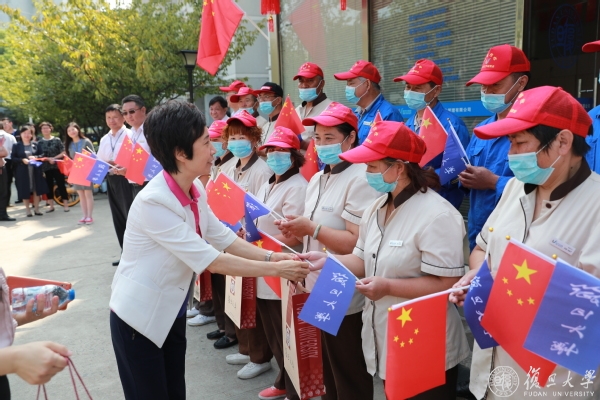 10月1日上午,升旗仪式结束后,校党委书记焦扬、党委副书记许征、尹冬梅,副校长张志勇等校领导走访慰问了留校学生、员工代表,并与大家一起欢庆国庆中秋双节。