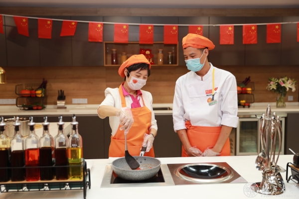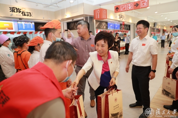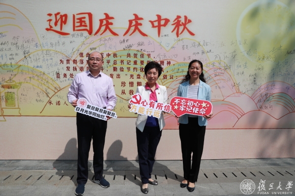 在北区食堂,焦扬一行出席了一系列留校师生欢庆国庆中秋双节活动,在露天广场签署“光盘行动由我做起”倡议、在北区食堂二楼及后厨慰问了食堂员工,在厨艺展示区和师生一起做月饼、制作国庆面浇头(西红柿炒蛋),并为复旦大学后勤劳动教育实践基地揭牌。