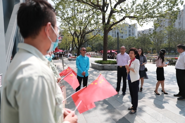 在北区,焦扬一行一一慰问了双节假期期间坚守在岗位上的菜鸟驿站快递员工、保安、垃圾分类督导员、物业和绿化员工、变配电站值班员工等后勤人员。