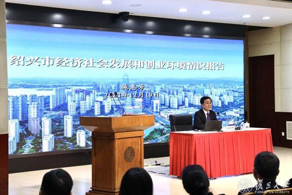 “绍兴历来是个好地方”,绍兴市委副书记、市长施惠芳面对着台下的复旦青年学子说。在“思政进校园——市长论坛暨光华论坛形势政策报告会”上,施惠芳作绍兴经济社会发展和创业创新环境专题报告。与此同时,外场也同步举办“名士乡·胆剑魂”绍兴红色文化风采展。
