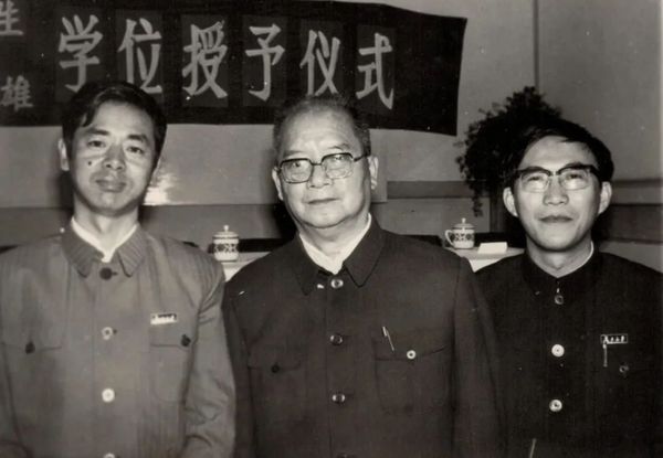 谭其骧培养了我国首批文科博士。1983年10月,谭其骧与周振鹤(左)、葛剑雄(右)摄于博士学位授予仪式上。