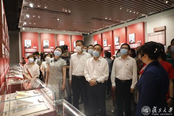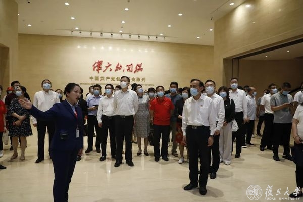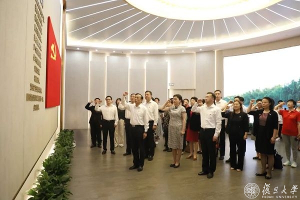 在讲解员的带领下,大家参观了“伟大的开端——中国共产党创建历史陈列”展览,并在馆内宣誓墙前重温入党誓词。复旦大学党委副书记、上海医学院党委书记袁正宏领誓。