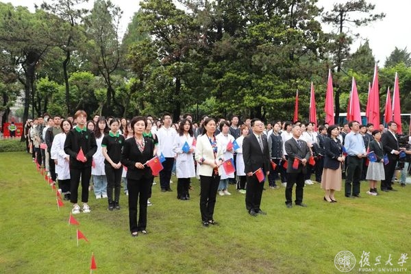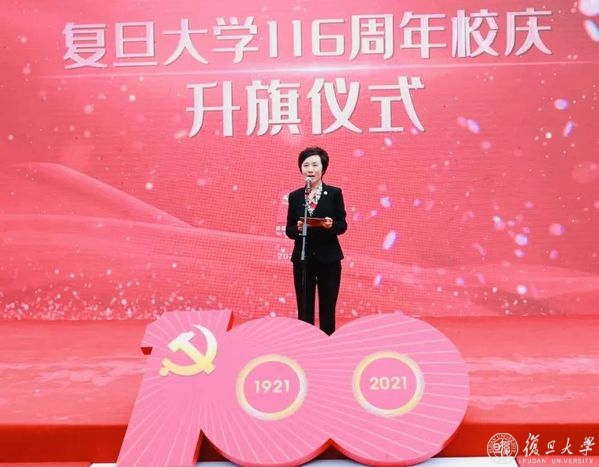 5月27日,复旦大学116周年校庆升旗仪式在举行。校党委书记焦扬出席并在国旗下讲话,副书记尹冬梅,副书记、纪委书记金海燕,副书记、副校长周亚明等学校党政领导、各部门、院系及附属单位负责人以及学生代表、教师代表、医护人员代表、职工代表在做好防疫工作后齐聚国旗坪,共沐光华、同祝校庆。