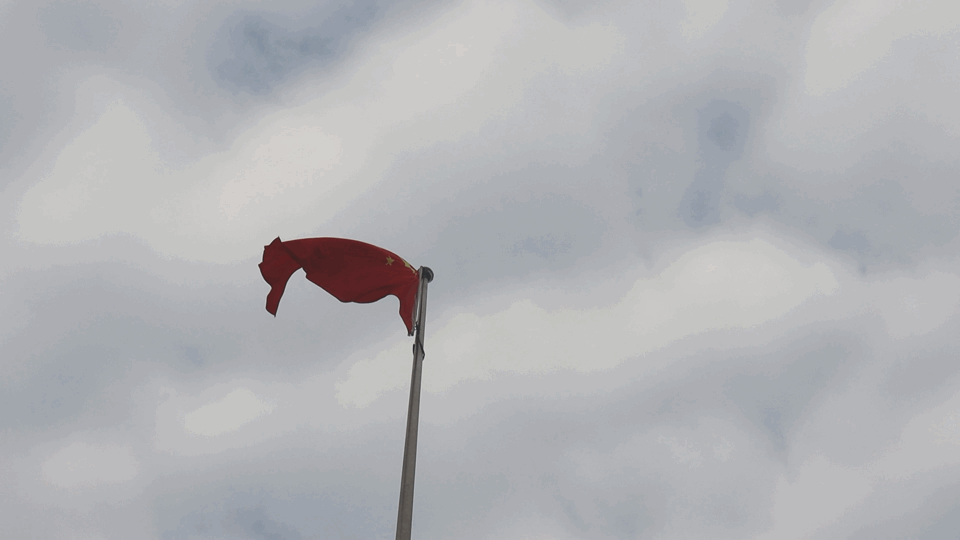 7时整,国旗护卫队在奏乐中护送着国旗进入会场;国歌响起,全体在场师生一齐向国旗致注目礼,庄严肃穆、敬意诚挚。