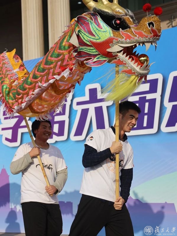 赛道之外,复旦体育的精彩仍在继续,龙狮、飞盘、滑板……辽阔的光草上,趣味体育活动如火如荼地进行,留下一片欢声笑语。