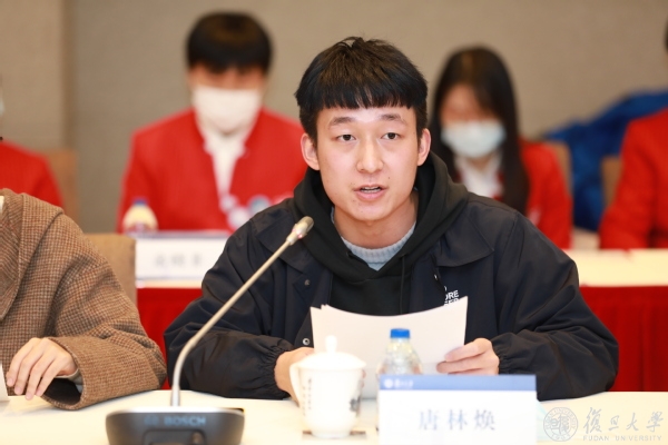 唐林焕讲述了自己从受助到自助、助人的人生经历。他说,通过“腾飞计划”迈入复旦,得到各方关心照顾,始终磨砺本领以“自助”,参加了大大小小的志愿服务以“助人”。他担任过国内外学术会议的会务志愿者,也前往过山区为孩子们支教,还连续两年迎接复旦新生,与南京路上“好八连”战士一起为民服务……他表示,未来要投身基层,到祖国需要的地方去。
