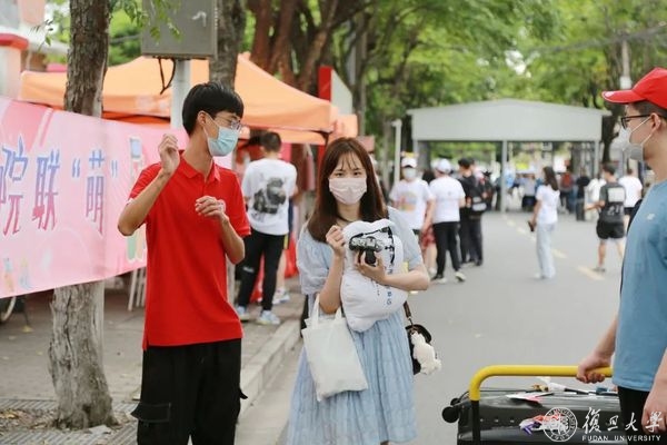 看到女生志愿者们头上戴着发箍,上书“问我”二字,焦扬赞道:“你们的发箍很可爱也很实用。对新生来说,学长学姐的帮助很重要,谢谢你们,希望你们做到‘问不倒’。”