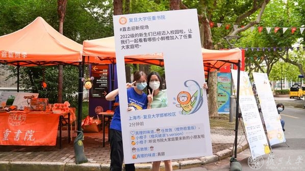 书院手册、笔记本、文件夹、书签、玩偶……报到咨询台上摆放着任重书院学生自主设计的主题文创内容,以书院标志色和老校长为元素制作产品,汇集成美观实用的“书院大礼包”,寄寓着对新同学“‘橙’风破浪”的美好祝愿。《雏凤文存:复旦大学任重书院学术论文集》由陈尚君院长作序,彰显了书院的学术传统。焦扬说,学校特别安排陈尚君这样的名师当书院院长,学生能近距离感受大家风范,这实在是一种幸运,希望同学们好好珍惜。“你们的设计非常精美,非常用心!”焦扬赞不绝口,还提起一位北京的女生考了684分的好成绩,坚定填报复旦历史系,因为她从中学便崇拜谭其骧先生。“这是热爱的力量,也是大师的力量!”