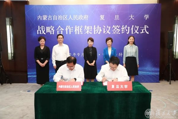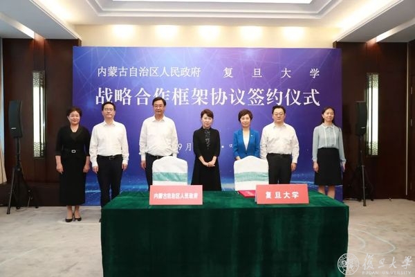 9月14日,内蒙古自治区人民政府与复旦大学在呼和浩特签署战略合作框架协议。